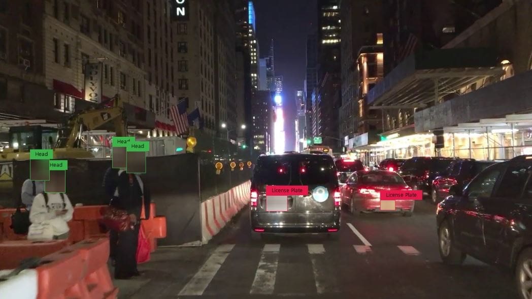 Los agentes de policía comprueban las grabaciones de sus cámaras corporales y otros equipos de vigilancia en busca de información de identificación personal. Un ejemplo podrían ser los rostros de menores o transeúntes inocentes. Para proteger su privacidad, el software de redacción de vídeo basado en IA está diseñado para aceptar rostros u otras imágenes fotográficas como estructuras de datos o puntos de datos que buscar dentro de sus algoritmos. Para cada conjunto de puntos de datos encontrados, hace coincidir la imagen y luego la difumina según la configuración de privacidad establecida por el agente, ya sea difuminada o completamente borrosa.