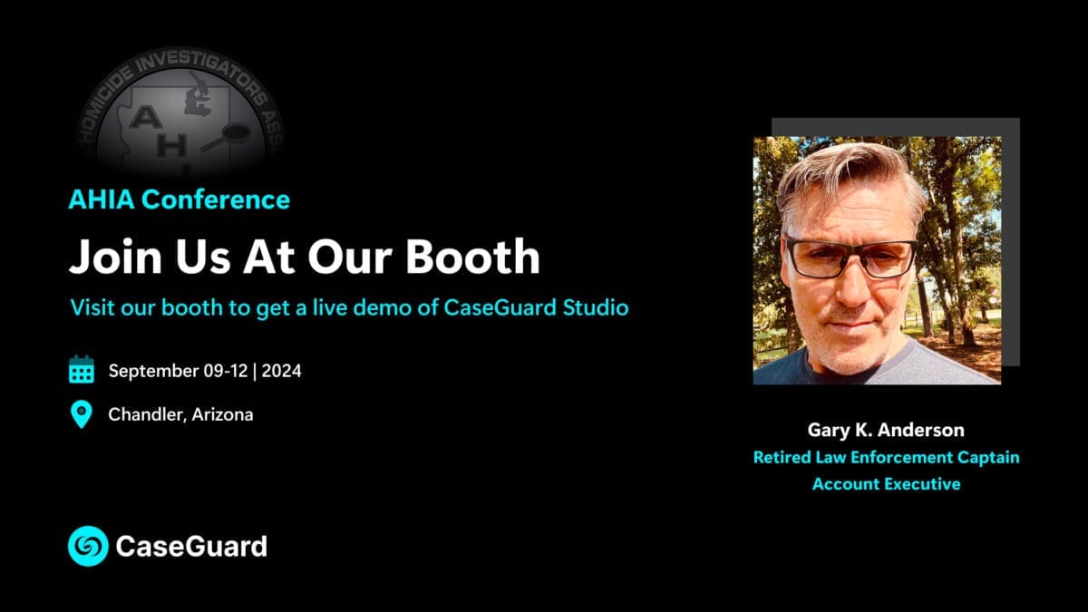 CaseGuard estará presente en la próxima conferencia de la Asociación de Investigadores de Homicidios de Arizona en el Wild Horse Pass Resort en Chandler, Arizona. Acompáñenos en nuestro stand para ver cómo puede utilizar la IA para la investigación técnica, ahorrando a su equipo horas de revisión manual de archivos multimedia con nuestro AI Investigation Studio.