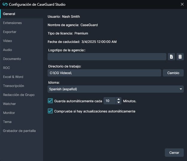 Al navegar por la Configuración general dentro de CaseGuard Studio, hay varias opciones que puede configurar para satisfacer sus necesidades particulares o las de su agencia.