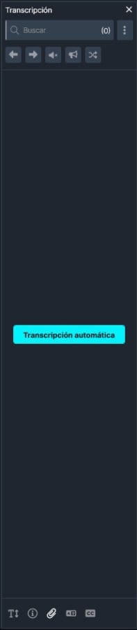 Panel de Transcripción May 21, 2024 | 2 minutes read Print page Summarize on Perplexity Summarize on ChatGPT Share on LinkedIn Share on X El panel Transcripción de CaseGuard Studio agiliza el proceso de transcripción de archivos de audio y vídeo, facilitando la generación de transcripciones de texto precisas. La transcripción automática, disponible en el panel, puede completar el proceso en un plazo de 2 minutos a 1 hora, dependiendo de la longitud del archivo. Una vez iniciada la transcripción automática, puede supervisar el progreso comprobando las tareas programadas (Ver -> Ver tareas programadas). Herramientas de transcripción: Herramientas del panel superior: Para obtener más información sobre estas herramientas, consulta este artículo. Buscar anterior: Oprima en este icono para localizar la instancia anterior de su consulta de búsqueda en la transcripción. Encontrar siguiente: Oprima en este icono para encontrar la siguiente instancia de su consulta de búsqueda en la transcripción. Silenciar todos los resultados de búsqueda: Oprima en este icono para silenciar todos los resultados de búsqueda que coincidan con su consulta. Pitar todos los resultados de búsqueda: Oprima en este icono para pitar todos los resultados de búsqueda que coincidan con su consulta. Cambiar el tono de todos los resultados de búsqueda: Oprima en este icono para Cambiar el tono de todos los resultados de búsqueda que coincidan con su consulta. Herramientas de fondo: Aumentar/Disminuir tamaño de fuente: Oprima en este icono para ajustar el tamaño de fuente de su transcripción en el panel Transcripción. Estadísticas de la transcripción: Oprima en este icono para ver las estadísticas de la transcripción. Adjuntar archivo de transcripción: Oprima en este icono para añadir una transcripción externa al archivo de CaseGuard. Traducción automática: Oprima en este icono para traducir su transcripción a otro idioma de destino. Grabar subtítulos en el archivo: Oprima en este icono para añadir los subtítulos de su transcripción a un vídeo, lo que resulta útil para los subtítulos opcionales. Navegación de documentos← Controles del JugadorPanel de Traducción → ¿Te ha resultado útil este artículo? No 1 Sí 1