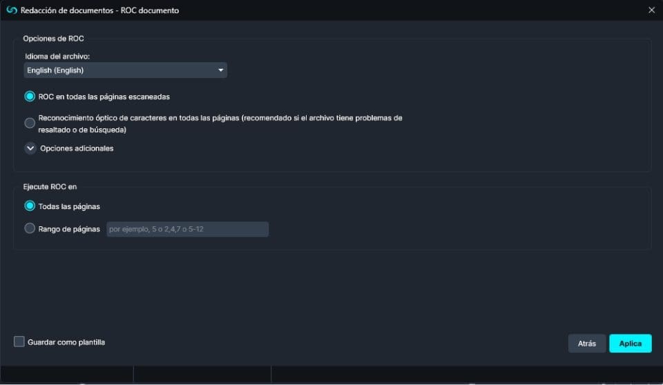 - Asegúrese de que la opción “ROC todas las páginas” está seleccionada.