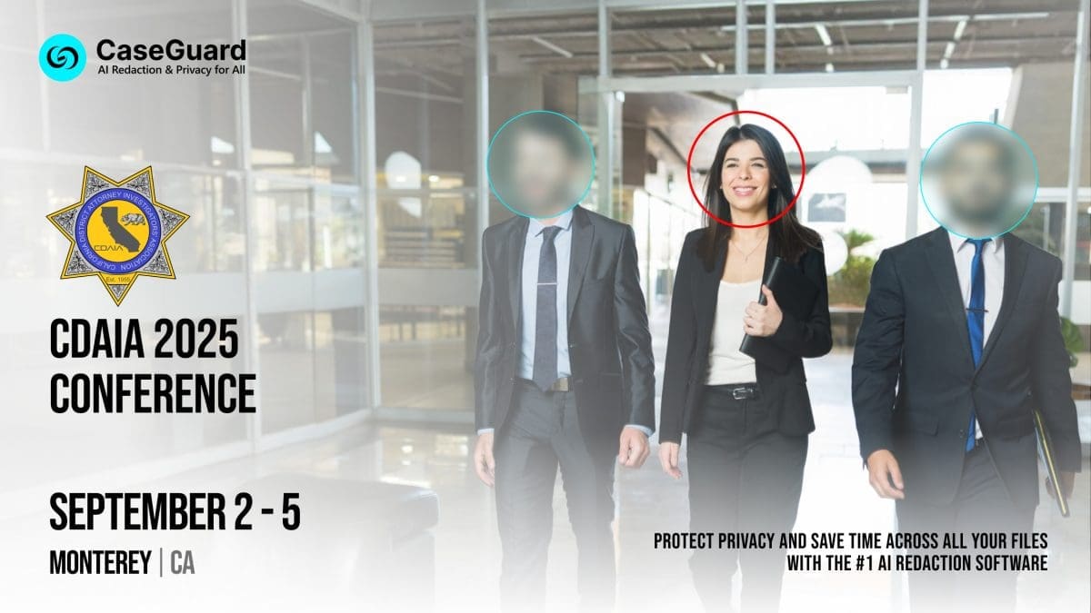 CaseGuard will be exhibiting at the upcoming California District Attorney Investigators’ Association (CDAIA) conference in Monterey, California. Visit our team to learn about CaseGuard Studio and its advanced AI redaction features.