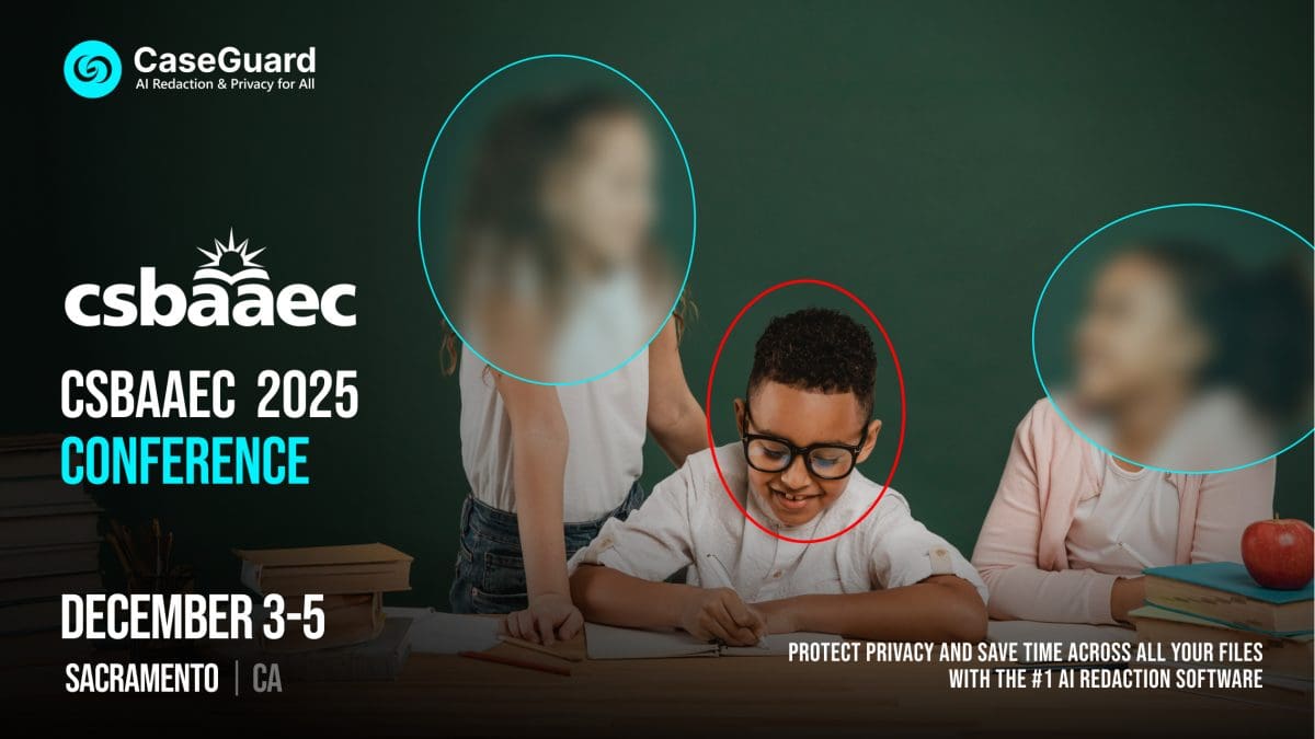 CaseGuard will be exhibiting at the upcoming CSBA Annual Education Conference & Trade Show in Sacramento, California. Visit our team to learn about CaseGuard Studio and its advanced AI redaction features.