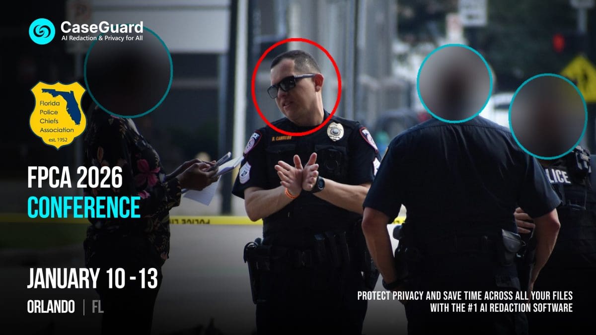 CaseGuard will be exhibiting at the upcoming Florida Police Chiefs’ Association Mid-Winter Conference in Orlando, Florida. Visit our team to learn about CaseGuard Studio and its advanced AI redaction features.