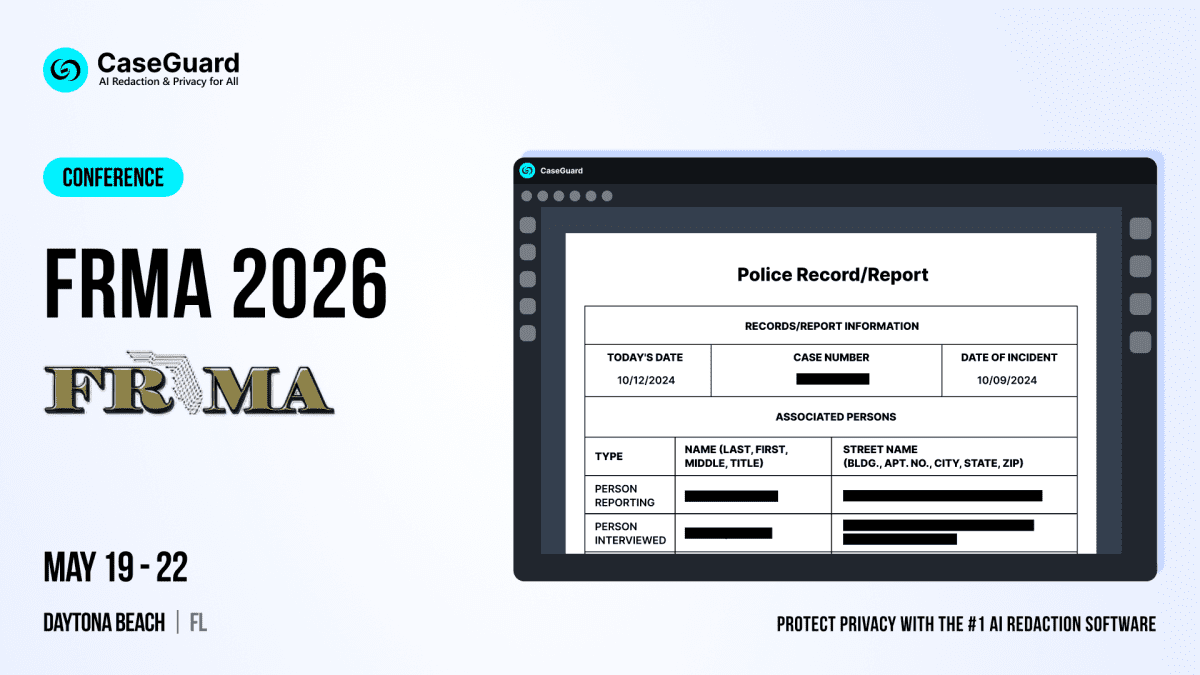 CaseGuard will be exhibiting at the upcoming Florida Records Management Association 2026 Annual Conference in Daytona Beach, Florida. Visit our team to learn about CaseGuard Studio and its advanced AI redaction features.