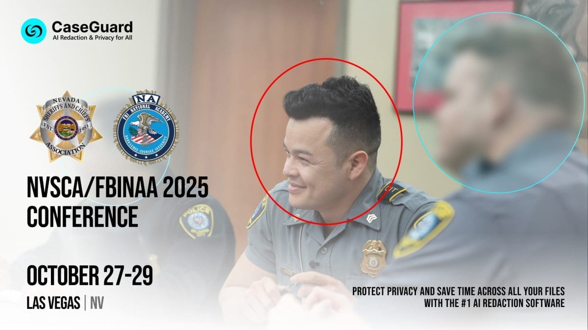 CaseGuard will be exhibiting at the upcoming Nevada Sheriffs and Chiefs Association and FBINAA Annual Conference in Las Vegas, Nevada. Visit our team to learn about CaseGuard Studio and its advanced AI redaction features.