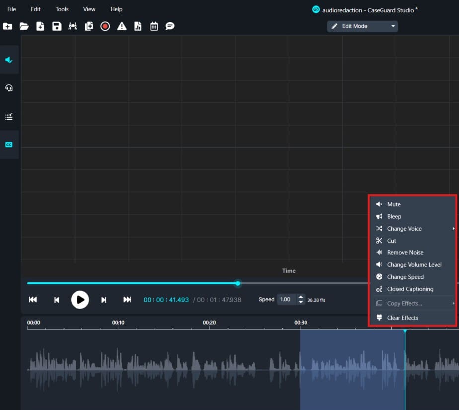Audio redaction is the removal of sensitive data from an audio file. In CaseGuard, you can redact Personally Identifiable Information (PII), such as Social Security Numbers (SSN), Employer Identification Numbers (EIN), phone numbers, and much more from any audio file within seconds!