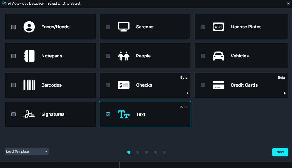 - In the left-hand Toolbar, select AI Video, the AI Automatic Detection window will appear with these options: