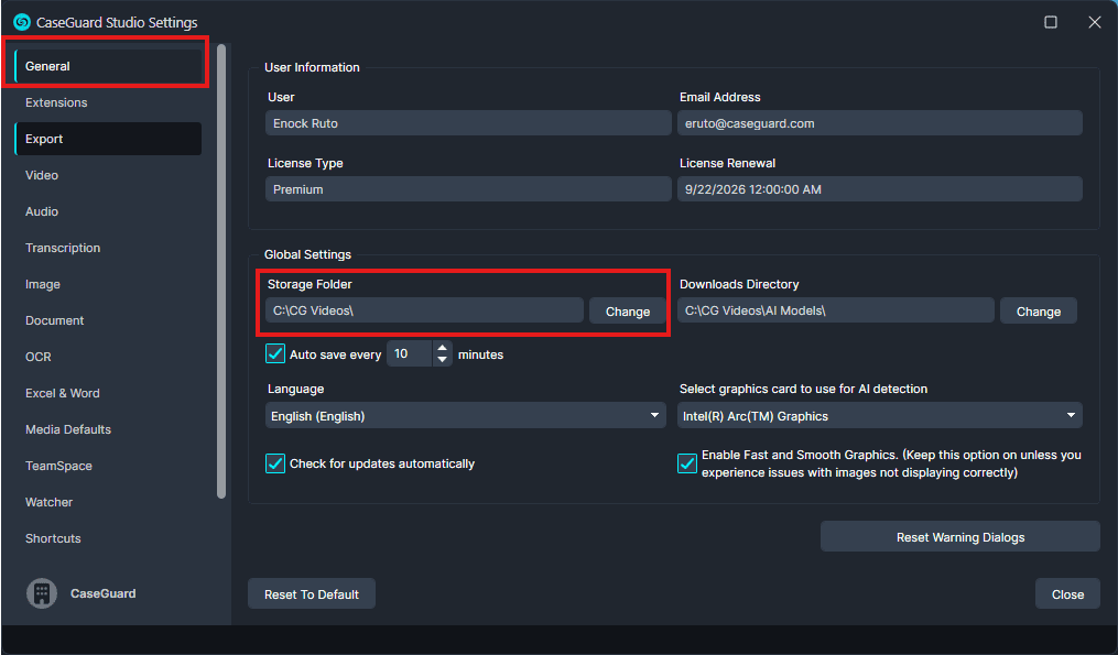 You now know how to update your default storage location or set a folder per project, giving you full control over where your CaseGuard files are saved. If you run into any issues, our support team is ready to help, email [email protected] for a quick solution.