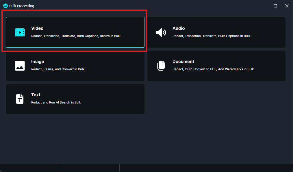 Choose Video, since we are extracting audio from a video file. Then select the video you want to work with.
