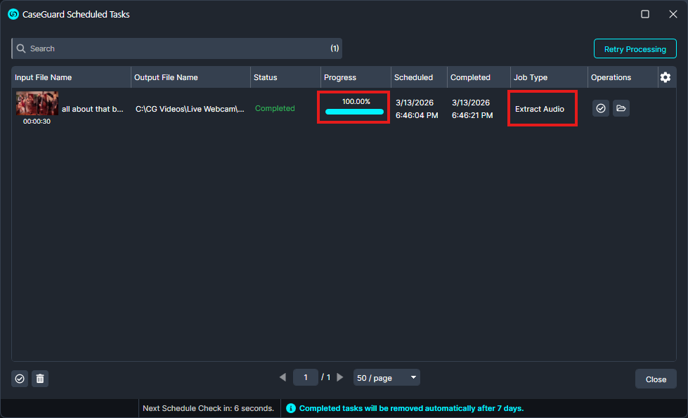 Extracting audio in CaseGuard Studio efficiently isolates audio from video, letting you focus on the sound without the visual content. This is useful for tasks like audio redaction, transcription, or analysis in legal, media, or compliance work. The process is simple, preserves project quality, and allows you to quickly access the audio you need. For any questions or assistance, contact [email protected].