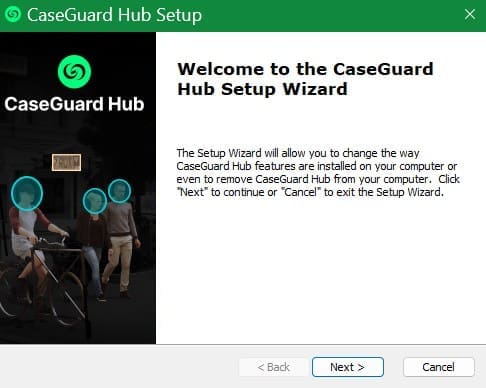 Click “Next” on the CaseGuard Hub setup screen.