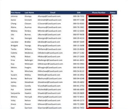 When looking at our document, we can see it contains Names, Phone Numbers, Email Addresses, and SSNs. Since there are so many redactable elements, we can ask AI to redact them all at once with the AI Analysis feature.