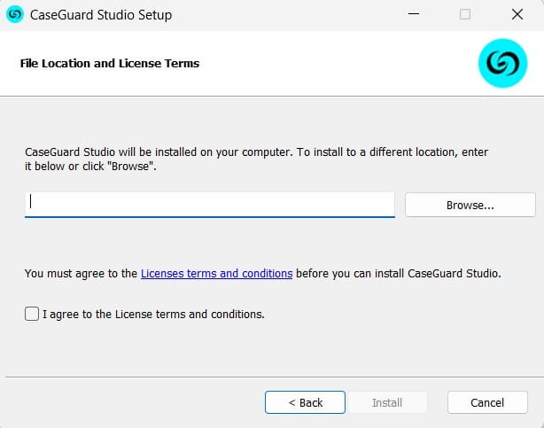 - Click the check box to agree with the CaseGuard License terms and conditions and then click “Install.”