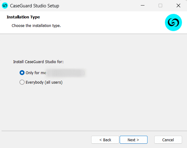 - On the next CaseGuard installer window decide if you would like to install the software for everyone that uses the computer or just yourself.