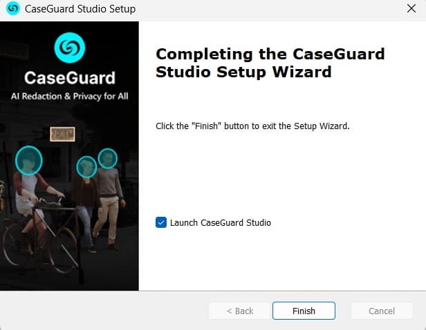- To launch CaseGuard Studio immediately, check the box next to “Launch CaseGuard Studio,” then click “Finish“.