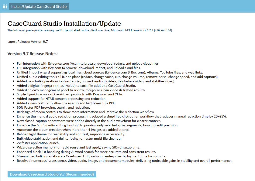 - On the “Install/Update CaseGuard Studio” page, click on “Download CaseGuard Studio (Recommended)” to proceed.