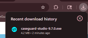- The CaseGuard installer will begin downloading, you can monitor the progress of the download in the top right corner of your browser.