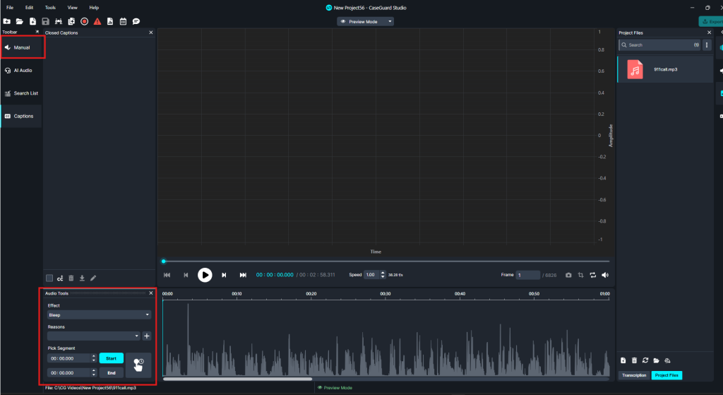 For example, Investigators with the need to redact phone calls or Interviews find CaseGuard Studio’s manual audio redaction reliable and user-friendly. In seconds, you can redact any (PII) within an audio file. Additionally, within Caseguard, you can anonymize any voice by adding the “Change Voice” effect which lets you choose from 10 different pitches. While the redaction tool is phenomenal, the “edit” option is available for those looking to hide the identity of the speaker without performing any redaction.