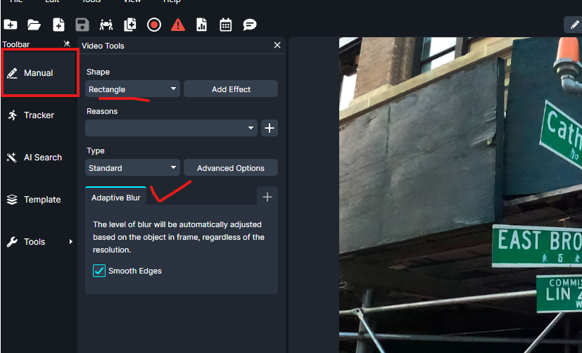 - Manual Image: Click the Manual Button to manually redact an image. This feature lets you draw a shape that can be positioned anywhere on the image. See the example image below for reference.