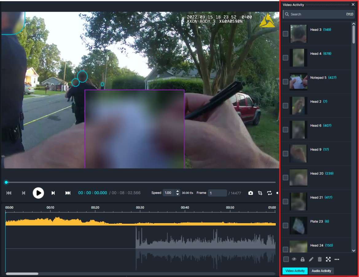 Once the AI is finished redacting, we’ll be able to see all of the redactions it made in the Object Detection Panel.