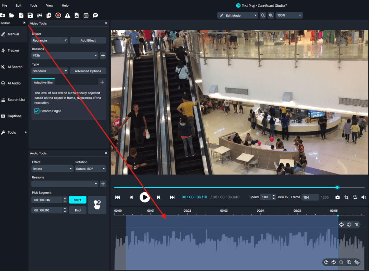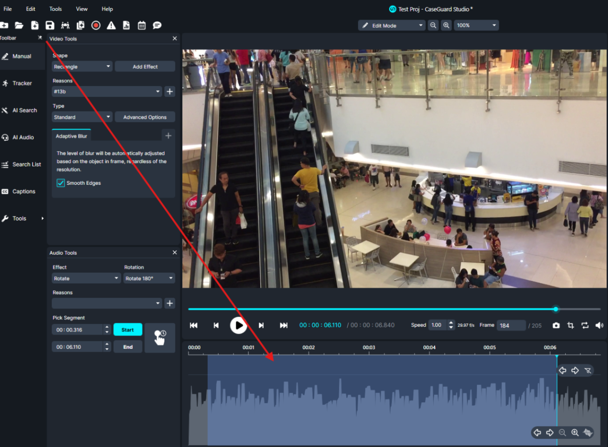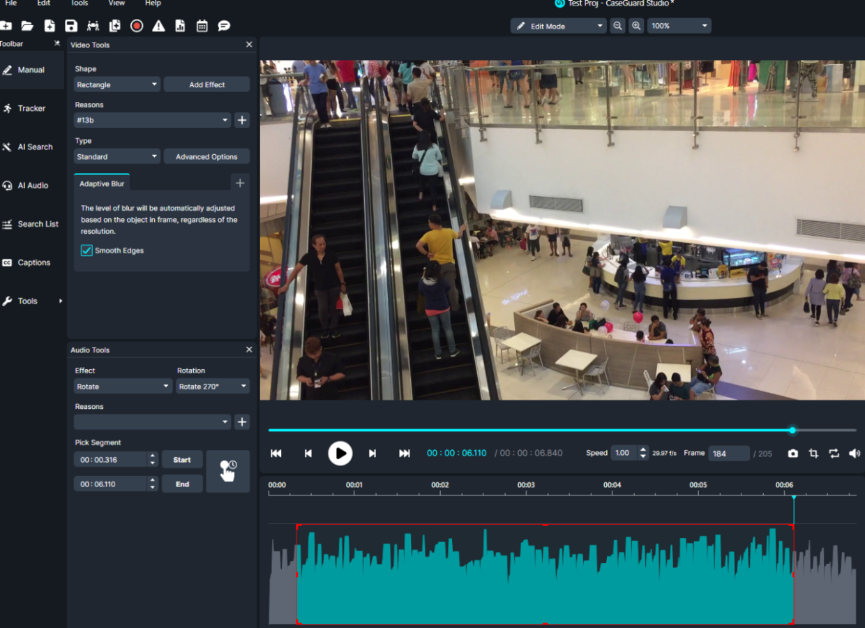 The Rotate or Flip tools in CaseGuard provide a simple and effective way to adjust your video footage for better viewing and redaction. By following the methods outlined above, users can apply rotations or flips to specific segments or entire videos, ensuring that all footage is properly oriented for review. Once applied, the changes are easily visible in the audio waveform and can be finalized by exporting the video. These tools streamline the editing process, making it faster and more accurate to prepare body-worn camera or other video footage for analysis and redaction.