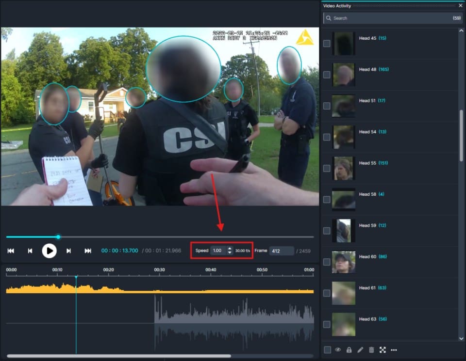 A common use case clients of the software speak to us about is the need to blur (redact) everyone in a video, with the exception of a few individuals. For example, when an incident occurs, police officers wearing body-worn cameras (BWC) have real-time footage of the crime scene. These videos are evidence that needs to be presented under the Freedom of Information Act (FOIA), with specific instructions for redaction based on their local, state, or federal agencies.