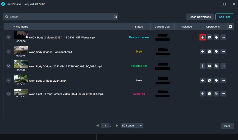 Once you’ve completed your redactions and exported your work, you can attach the exported file by clicking the name tag icon next to the original file. Marking it as “Completed” will allow you to add the exported file under the dropdown menu labeled “Redacted File(s).”