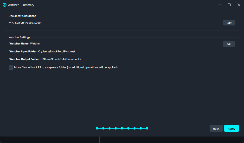- Click “Browse” to add a folder to watch. This is the folder where all documents that need to be redacted will be input.