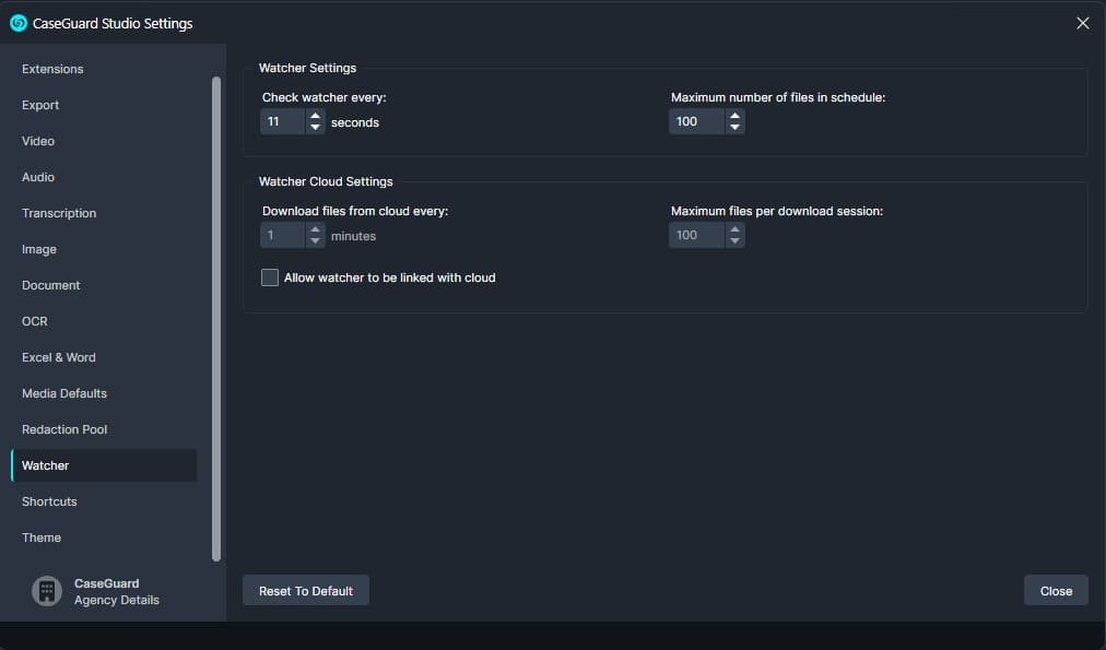 CaseGuard has several settings to help you set up The Watcher the way you want.