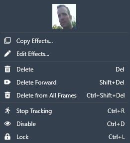 Now all the faces are blurred, you can start watching the video, and when you see one face, you want to unredact, pause, then click on the face and use Ctrl + D on your keyboard to unredact the face. You can also right-click on the face and select the disable option from the dropdown menu.