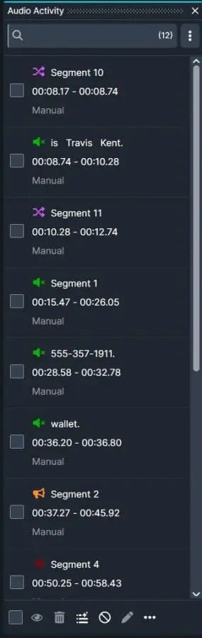 When redacting audio, CaseGuard’s Audio Activity panel is the easiest way to detect and manage bulk groups’ of redacted Personally Identifiable Information (PII), such as Names, Social Security Numbers (SSNs), phone numbers, and addresses from audio recordings.