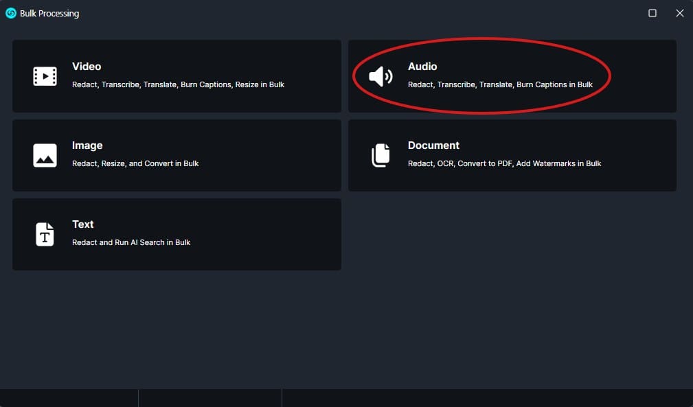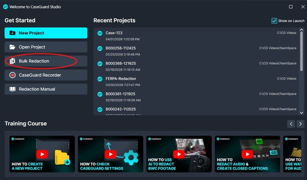 - Click on Bulk Redaction