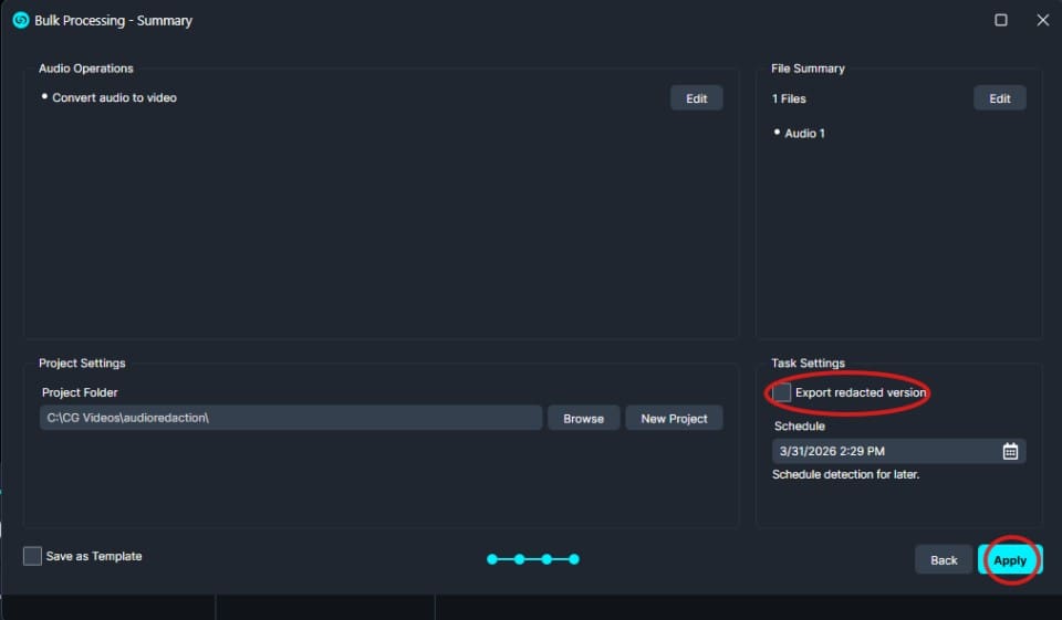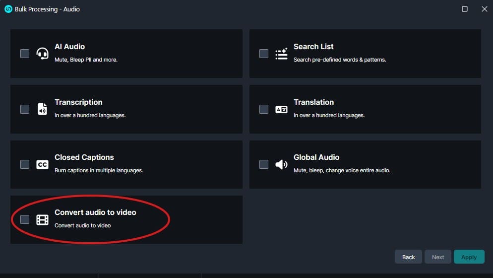 The Convert Audio to Video feature in CaseGuard Studio is a simple yet powerful way to generate video files from existing audio content. Whether you’re preparing files for upload, presentation, or archival purposes, this tool makes the process quick and seamless.