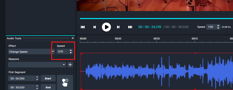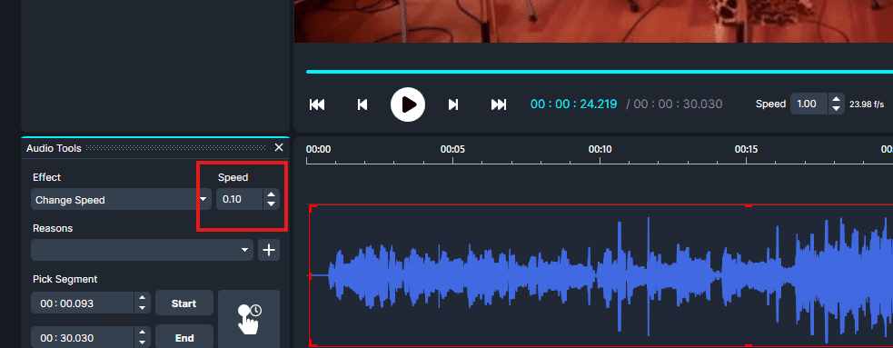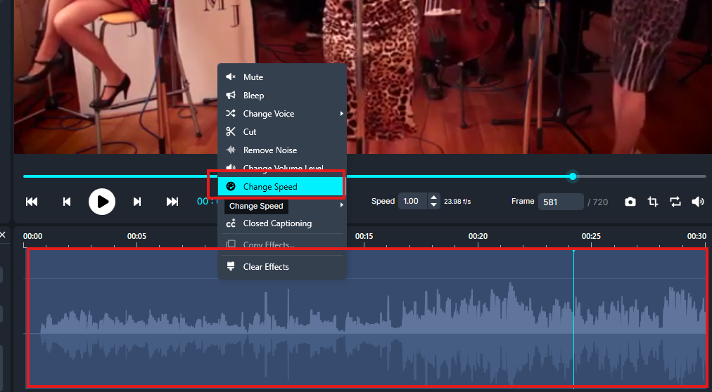 Right-click on the highlighted section and select Change Speed.