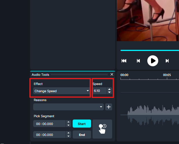 Set the Start and End times for your speed change manually or by playing the video and clicking Start and End.