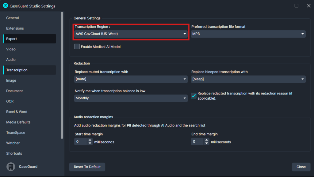- Once CaseGuard is restarted, try and run the transcription on the same file.