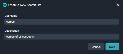 - The Add New window will open, here give your list a name and description then click Next.